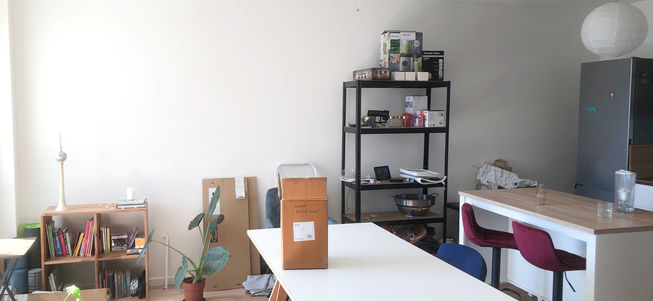 We created a multifunctional office: storage, extra bed, bookcase and two desks (one foldable).